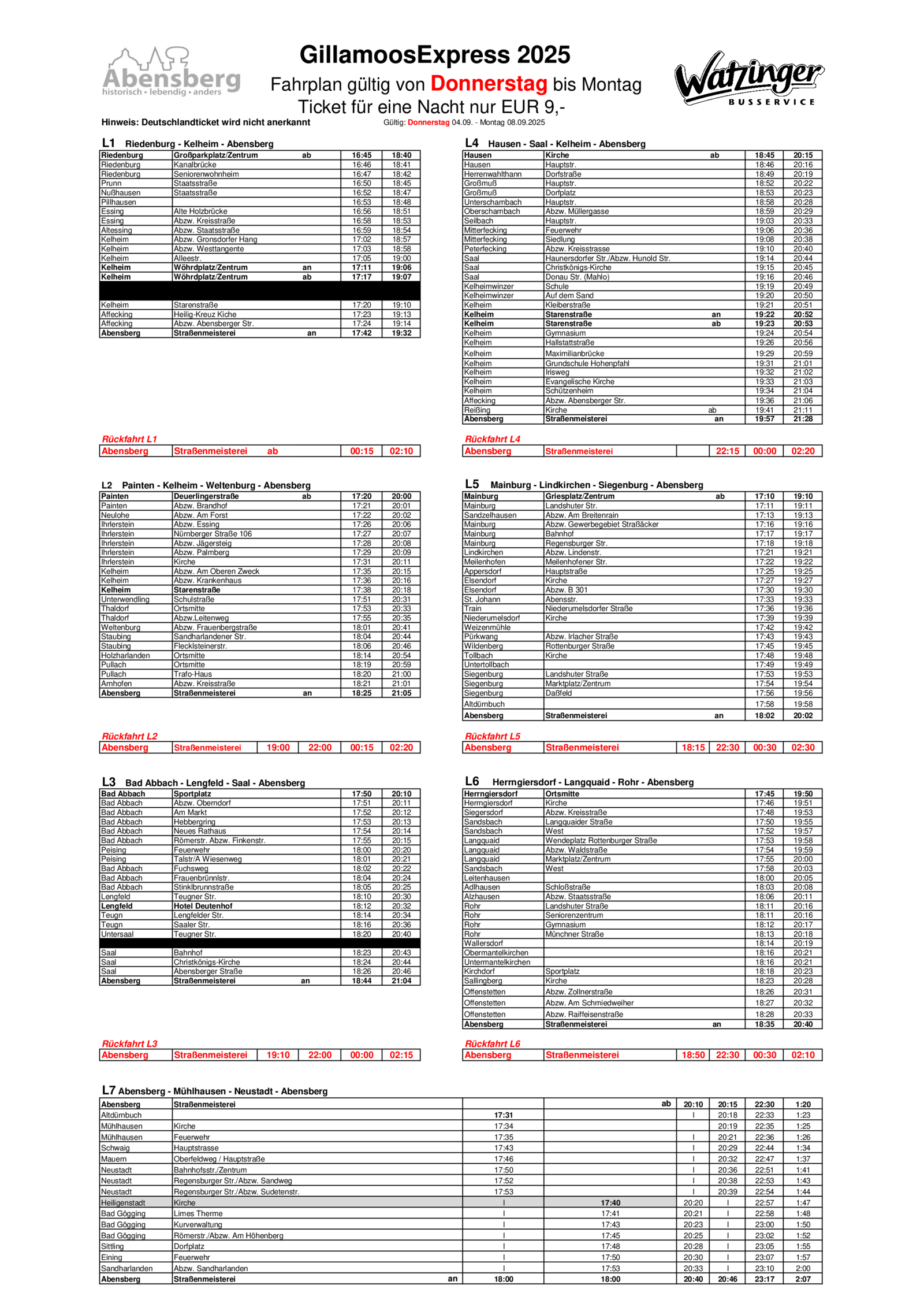 Bei Fragen, Wünschen oder Anregungen zum GillamoosExpress wendet Ihr Euch bitte direkt an den Busservice Watzinger unter der Telefonnummer 09405 959 44 45.