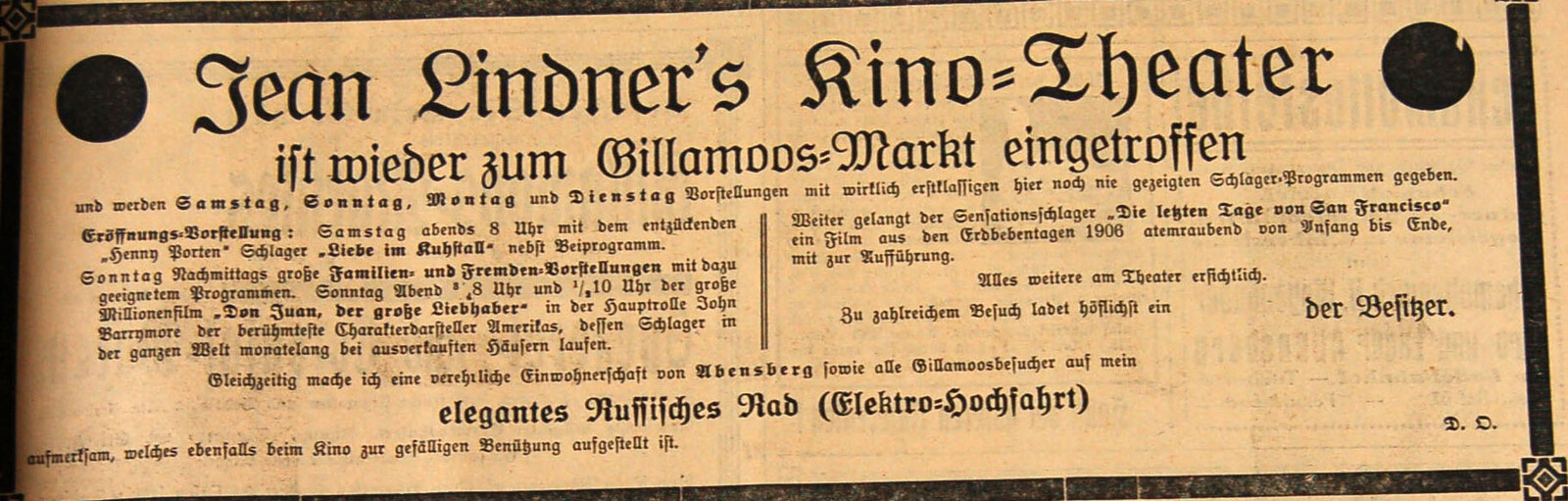 Um 1900 erscheint der Kinematograph als der letzte Schrei, in den 20er Jahren lösten ihn dann Kino-Theater Vorführungen ab. Klassische Schaustellungen sind heute teilweise aus der Mode gekommen. Weder bringt der „Elektro John“ Glühbirnen mit dem Mund zum Leuchten, noch zeigen Cinematographen „Maria Stuart“. Das Kasperltheater der Familie Richter allerdings, das ist heute genauso beliebt auf dem Gillamoos wie Ende des 19. Jahrhunderts.