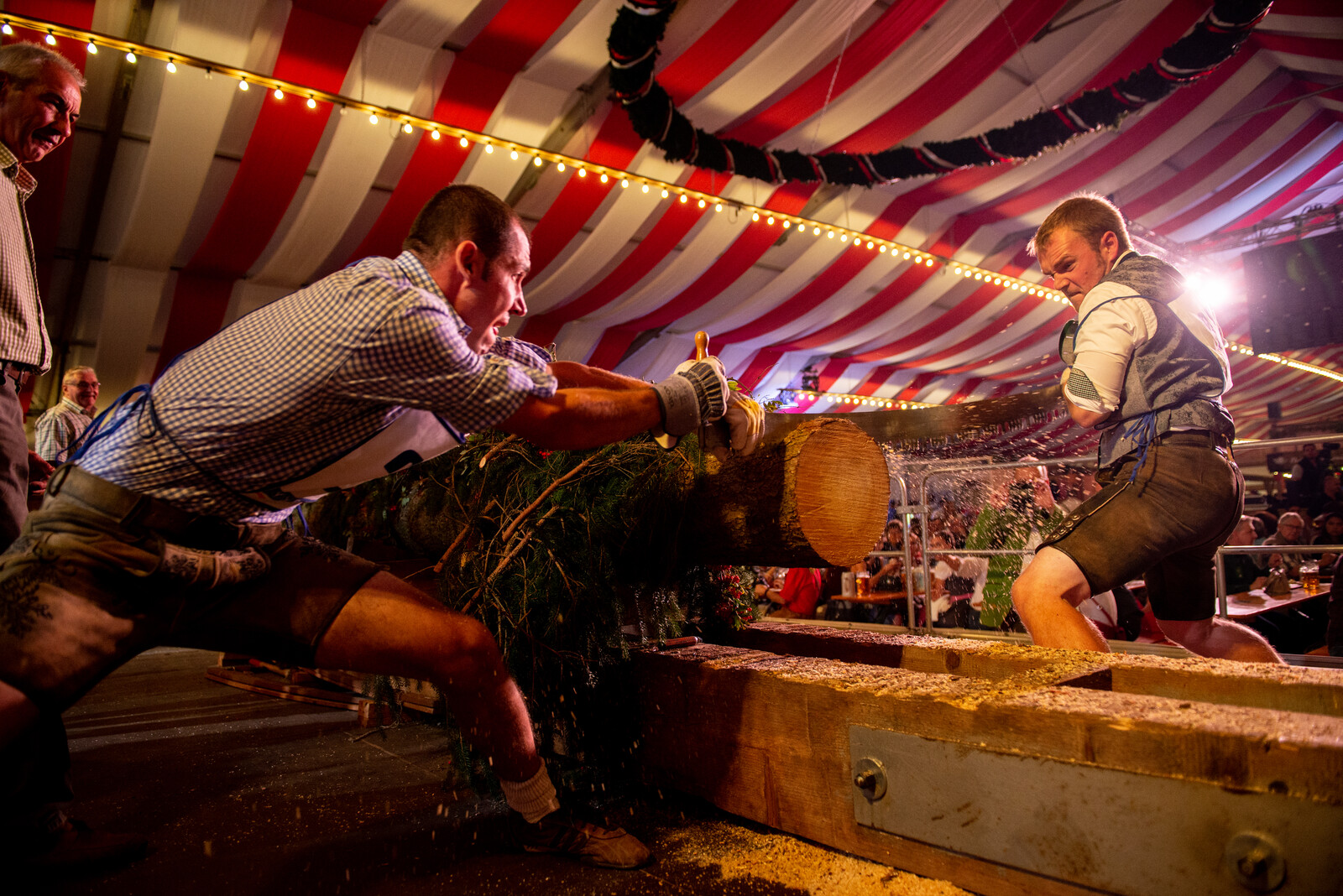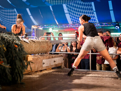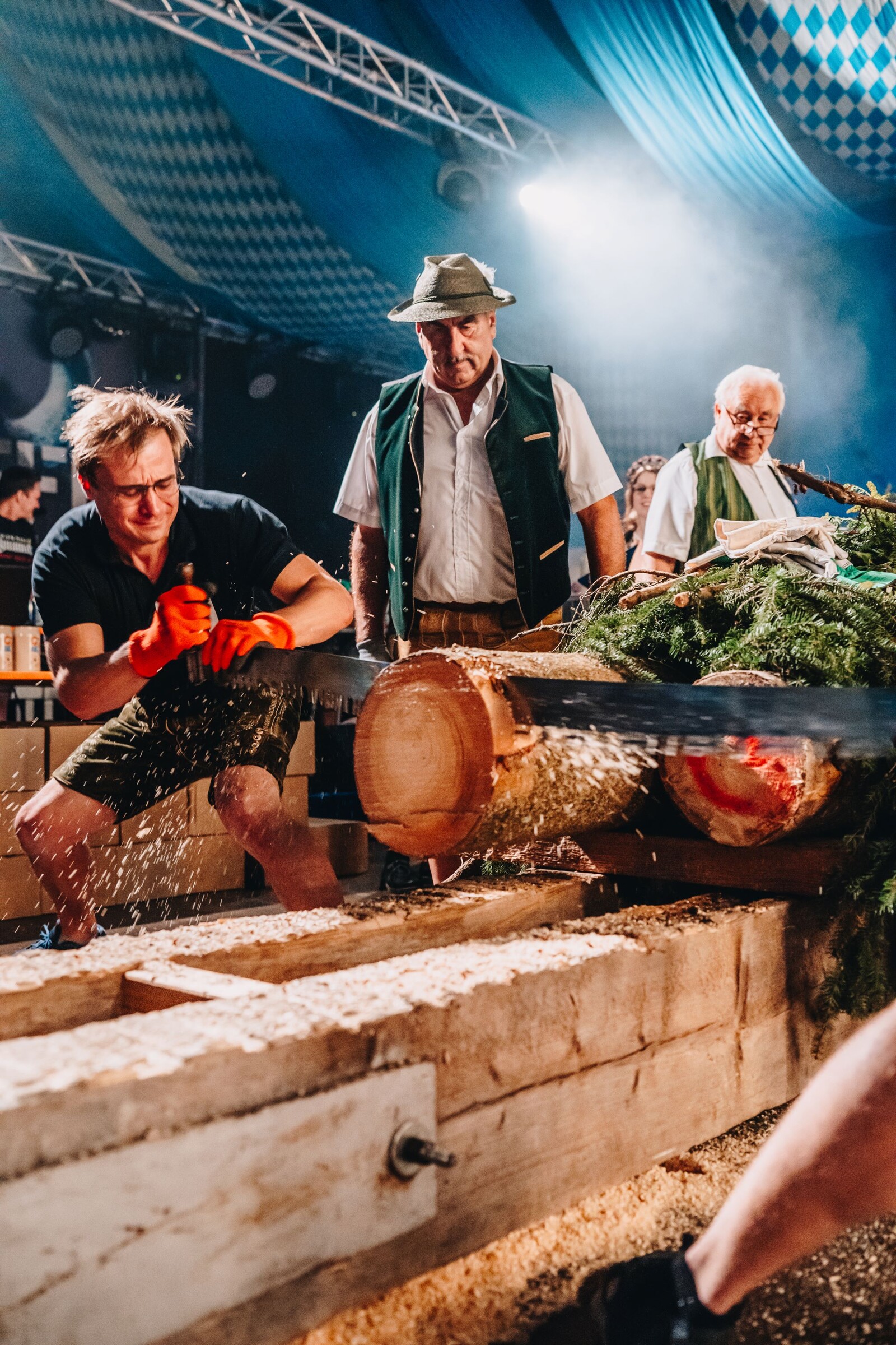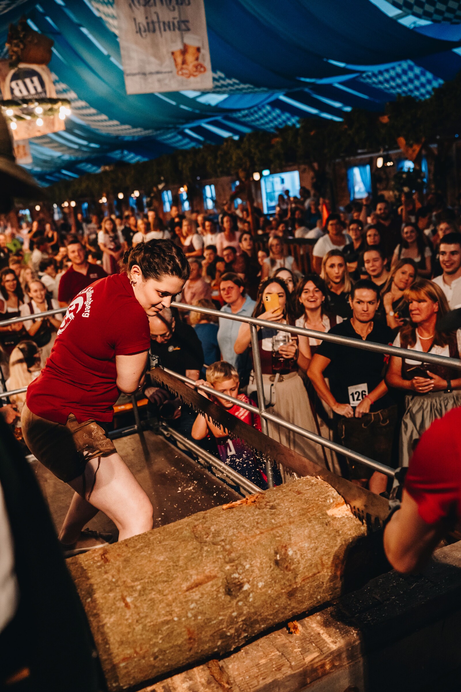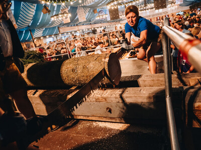 Kräftemessen beim Hofbräu: Beteilige Dich mit Deinem Verein oder Deinen Freunden am Holzsagln! Damen und Herrenmannschaften werten die Schiedsrichter getrennt, nach dem Sagln bekommt jeder einen Gillamooskrug von den amtierenden Dirndlköniginnen überreicht. Dazu spendiert der Hofbräu und sein Festwirt für jeden an Pfiff frisch gezapft vom Fass.