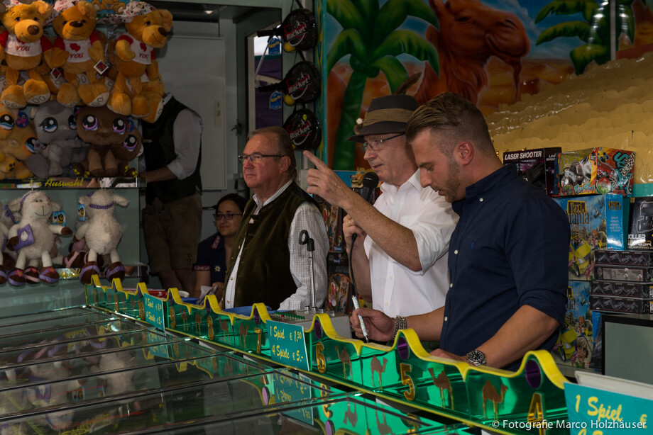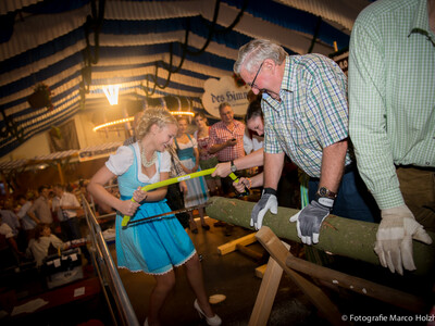 Oliver Strümpfel versuchte sich am Weltrekord im Maßkrugtragen im Jungbräuzelt.