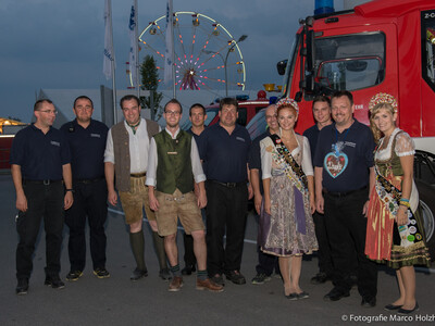 Kandidatinnen der Dirndlköniginnenwahl mit Festwirt Peter Schönigier und Niklas Neumeyer.