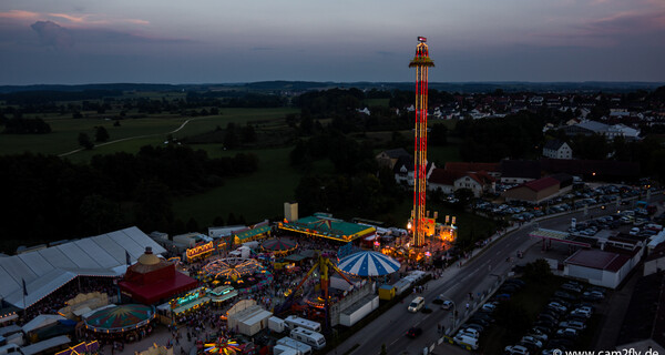 Gillamoos mit Power Tower und Blick Richtung Aumühle bei Nacht.