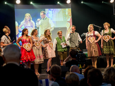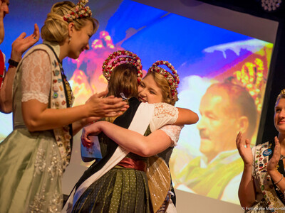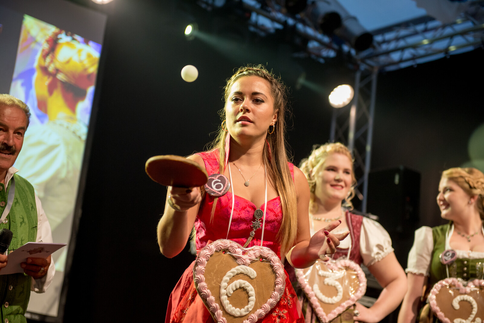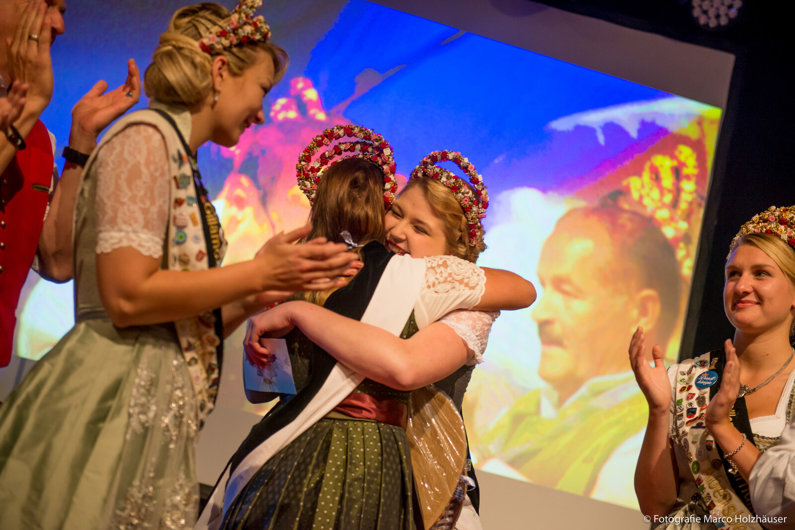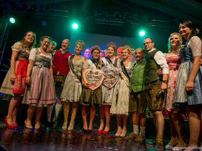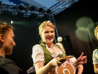 Julia und Dani holten sich am Montag im vollen Jungbräuzelt die Kronen der Gillamoos Dirndlkönigin und ihrer Vize.