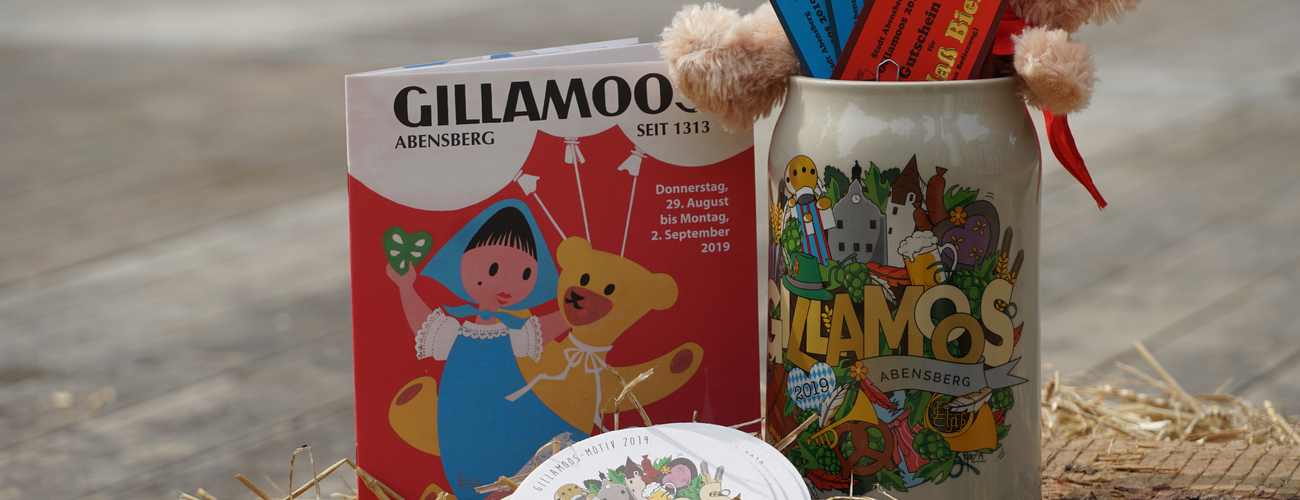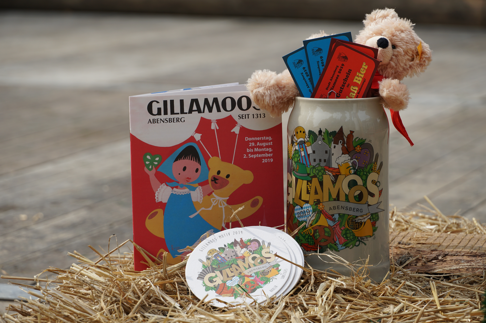 (1) Unter allen teilnahmeberechtigten Teilnehmern verlosen wir drei Gillamoos‐Marken‐ Sets, bestehend aus zwei Bierzeichen (Maß) sowie zwei Zeichen für Essen im Wert von 5€. Die Markerl‐Sets gelten in allen Bierzelten und an den Imbissständen am Gillamoos 2019. Das Entgelt für die Bedienung ist nicht im Wert enthalten. Zusätzlich erhält jeder Gewinner den Gillamooskrug 2019, wie auf dem Gewinnspielfoto des Postings abgebildet, vier Bierdeckel und den Gillamoosteddy.