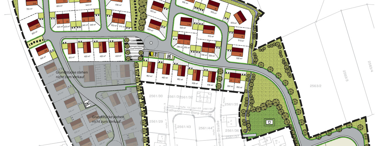 Alle Grundstücke werden voll erschlossen über ein Vergabemodell veräußert.