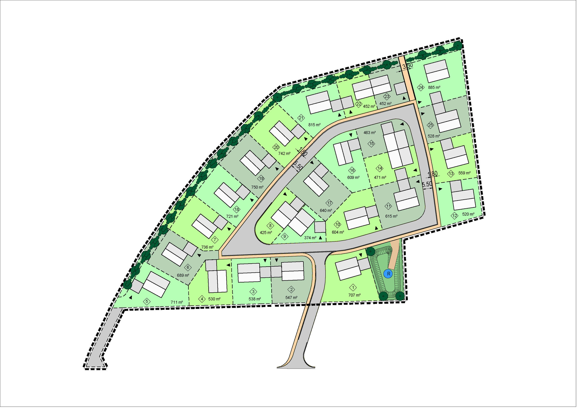 Es entstehen 41 Parzellen, darunter 12 Doppelhausparzellen.