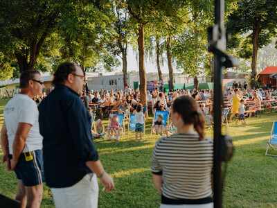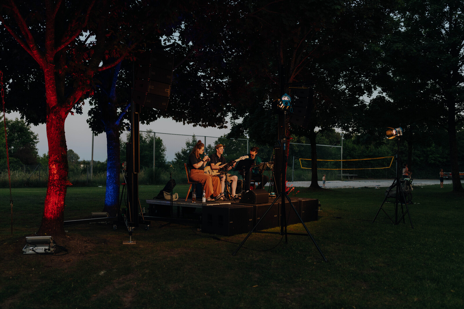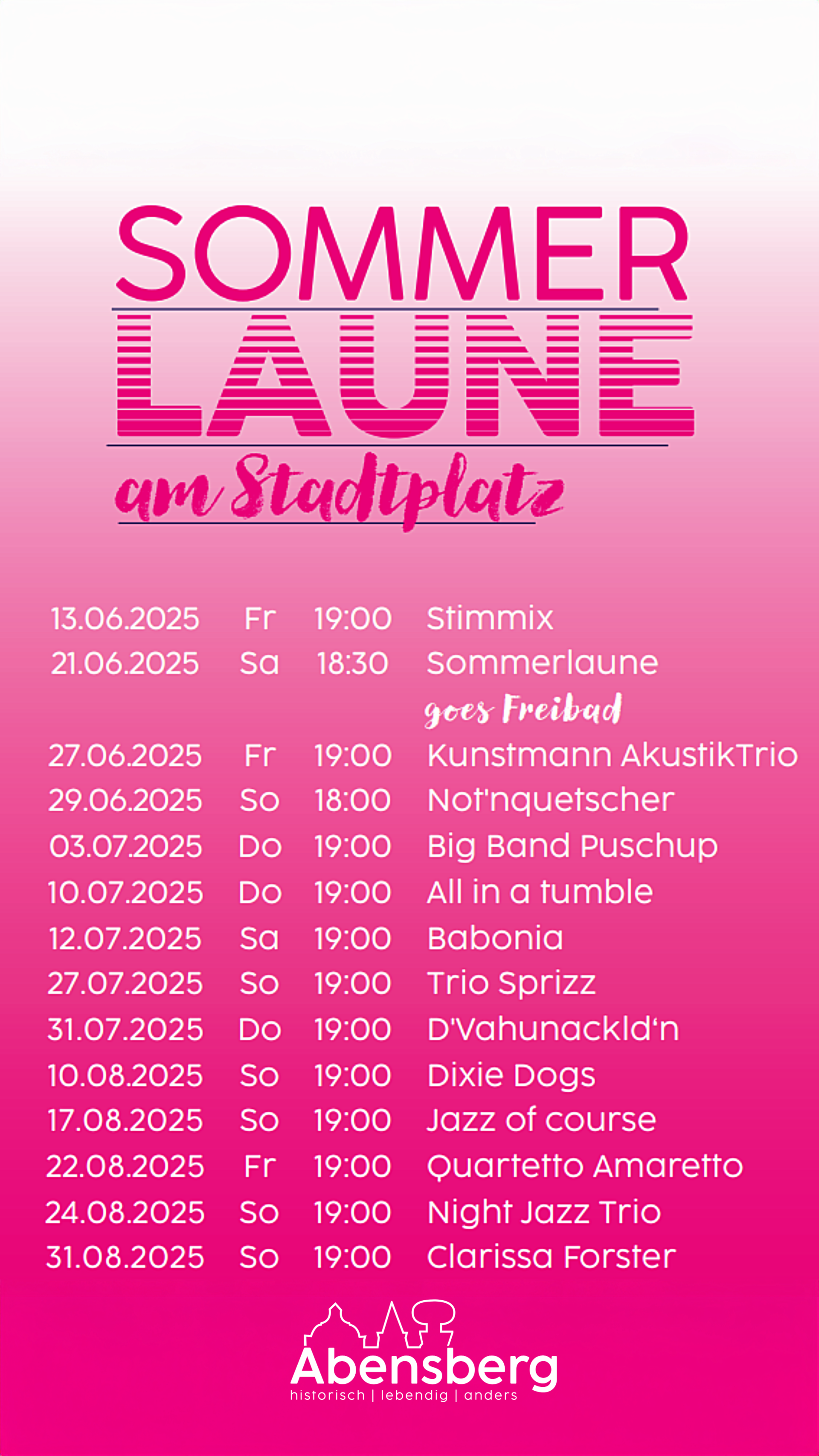 Tagsüber sorgte ein buntes Kinderprogramm und Mitmachaktionen der DLRG Abensberg und dem TSV Abensberg Delphine für Begeisterung bei den kleinen Gästen. Von Schnuppertauchen bis zum Turmspringwettbewerb war für jeden etwas dabei. Für das leibliche Wohl am Abend sorgte Burger Resi mit frisch zubereiteten Schmankerln, während die DLRG kalte Getränke ausschenkte. Die stimmungsvolle musikalische Begleitung übernahm Clarissa Forster mit Band. Als die Dämmerung hereinbrach, wurde das Freibad in ein farbenfrohes Licht getaucht: Bunte Strahler (wie sonst am Stadtplatz) tauchten das Bad in eine tolle Atmosphäre.