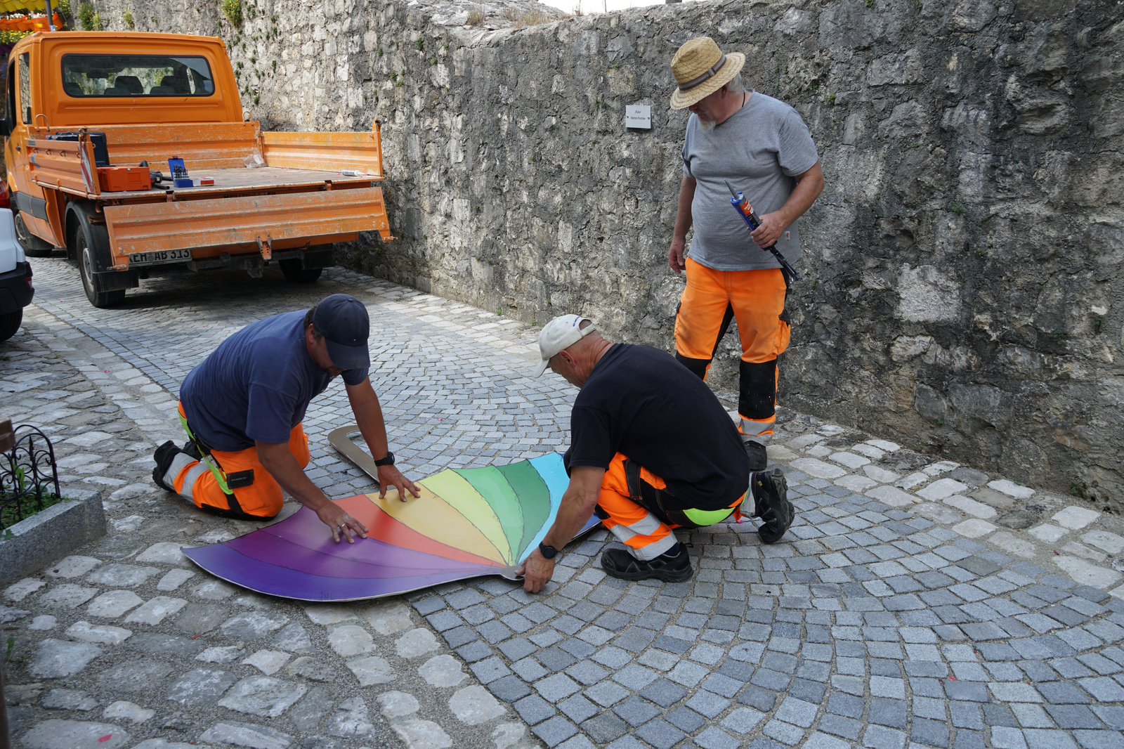 So avancierte Joseph Beuys‘ Postulat ganz unerwartet zum Motto unserer Sommervorbereitungen. Obwohl die Umsetzer des Bauhofes das ja gar nicht hören wollen. Schließlich sehen sie sich nicht als Künstler, ein jeder hat ein anderes Handwerk von der Pieke auf gelernt. So bringen sie Fachwissen aus verschiedenen Bereichen zusammen und ergänzen sich gegenseitig. Ohne das Team und seinen engagierten Einsatz wären die Farbenspiele von vorneherein gescheitert. Wir sind also sehr stolz auf unsere Künstler ;-)