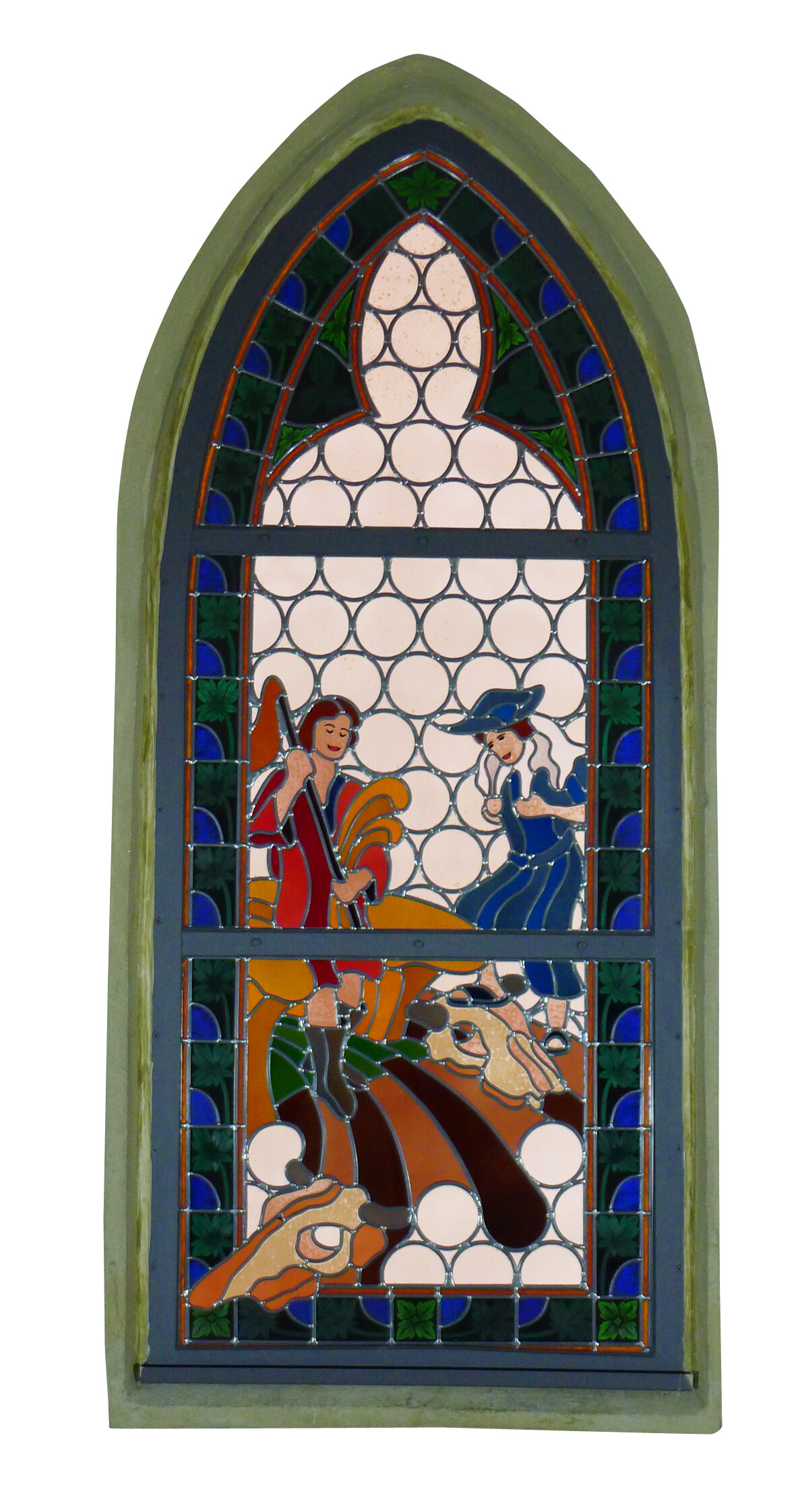 Die Gestaltung der Fenster übernahm der Abensberger Künstler Johannes Rohen, die Regensburger Glasmalerei Schwarzmayr übernahm die Fertigung und den Einbau. Das Konzept der Motivflügel realisierte die Stadt Abensberg, herzlicher Dank gilt hierbei allen Sponsoren.