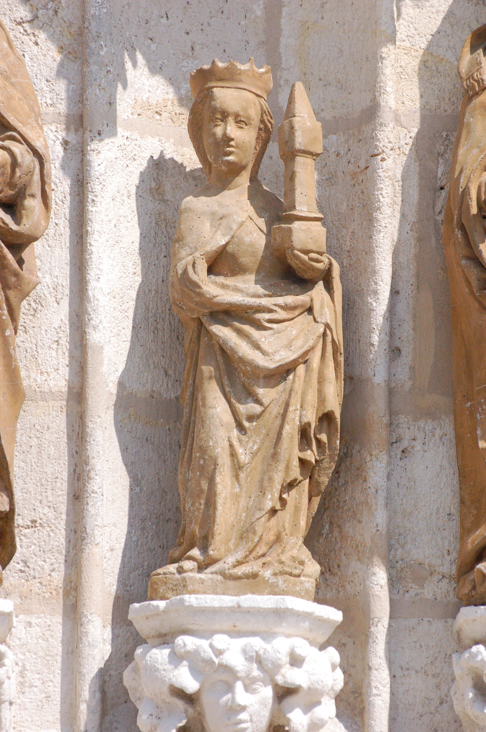 Die Kirche ist ein Hallenbau mit eingezogenem Chor, an dessen Nordseite der Kirchturm steht, der das Stadtbild eingängig prägt. Die Portale bestehen aus heimischen Kalkstein. Das Westportal ist in Mauerstärke um eine nischenartige Vorhalle mit Rippengewölbe zurückgesetzt, dessen äußere Rahmung zwischen Giebel und Fialen ein Blendmaßwerkfries ziert. Die Figuren auf den originalen Konsolen sind neueren Datums. Der mächtige, quadratische Turm ist in den gotischen Geschossen schmucklos. Das barocke Obergeschoss weist gerundete Ecken auf und eine Doppelpilastergliederung. Charakteristisch ist die flache, geschweifte Turmhaube bekrönt von der langgezogenen Pyramide.